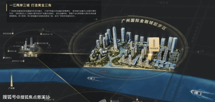 广州一江两岸三片区核心,国际金融城与珠江新城、琶洲电商区联动互补,共同发展;