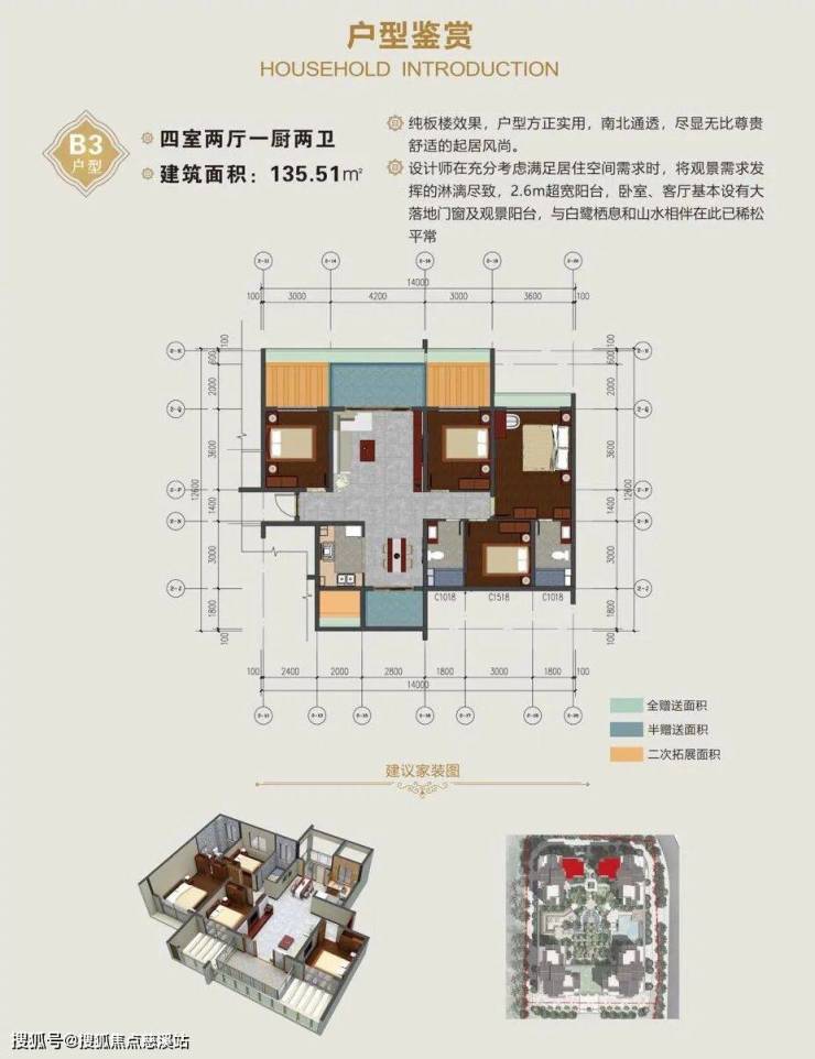 2.设计师在充分考虑满足居住空间需求时,将观景需求发挥的淋漓尽致,2.6m超宽阳台,卧室、客厅基本设有大落地门窗及观景阳台,与白鹭栖息和山水相伴在此已稀松平常。