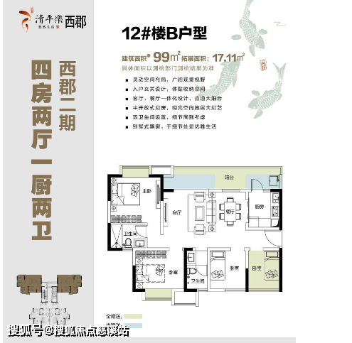 B户型 四室两厅一厨两卫 建筑面积99㎡