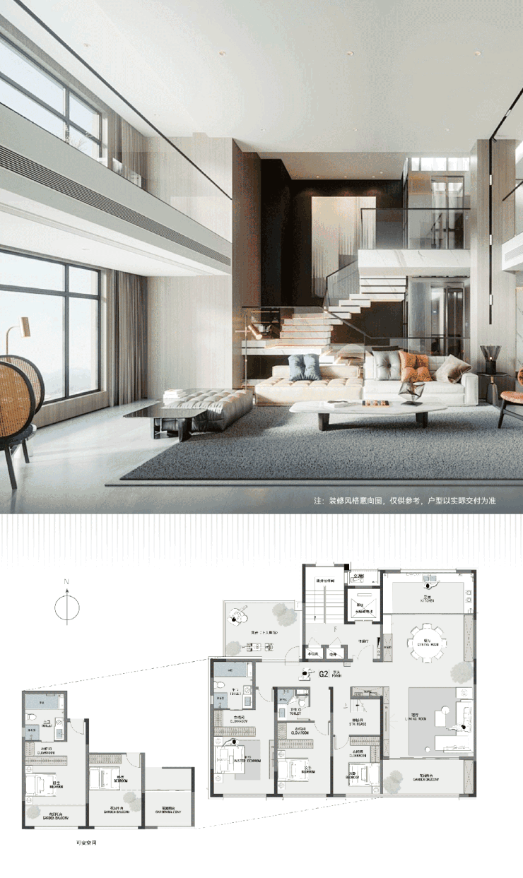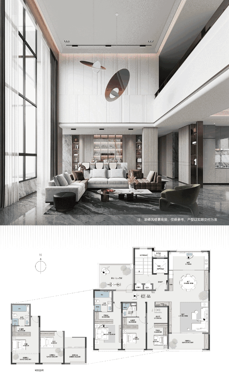 在城市更新语境下,打造好房子,为古城带来全新居住理念,是城发蓝城·凤起历山不懈的追求。其打造的6层大平层与7层复式,拥有堪比别墅的居住体验,其中建面约297m²复式户型层高约3.2米,挑空客厅宽约6米、进深约4.5米,空间开阔通透,更为难得的是,客厅进深可拓展至约6.9米,还可以随心定制空间,打造会客厅或室内花园等,营造艺术殿堂般感受,开启非凡生活盛宴。