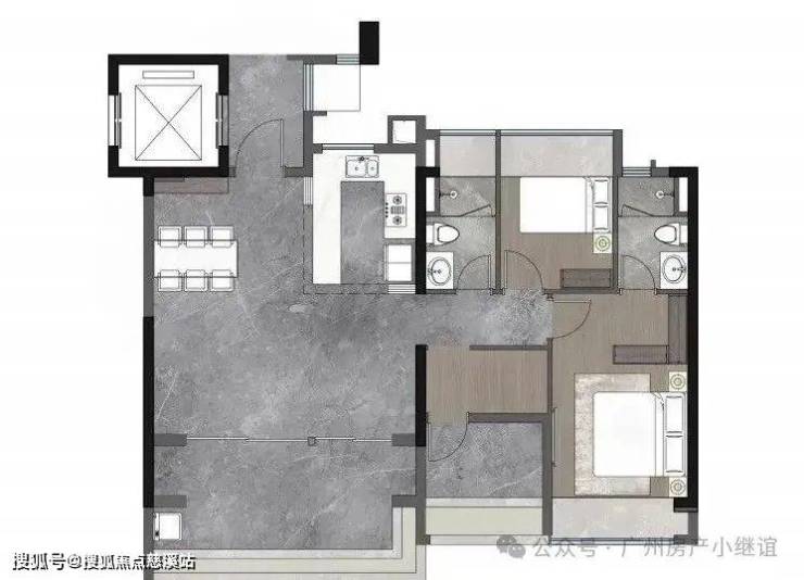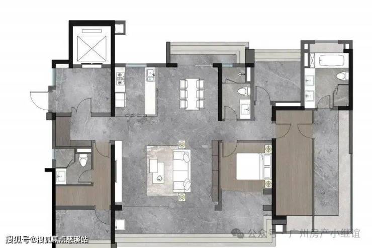 170㎡航母大平层:极境方厅设计,南北通透,中西双厨配置,豪华双套卧,主卧配有尊崇衣帽间及酒店式双台盆。