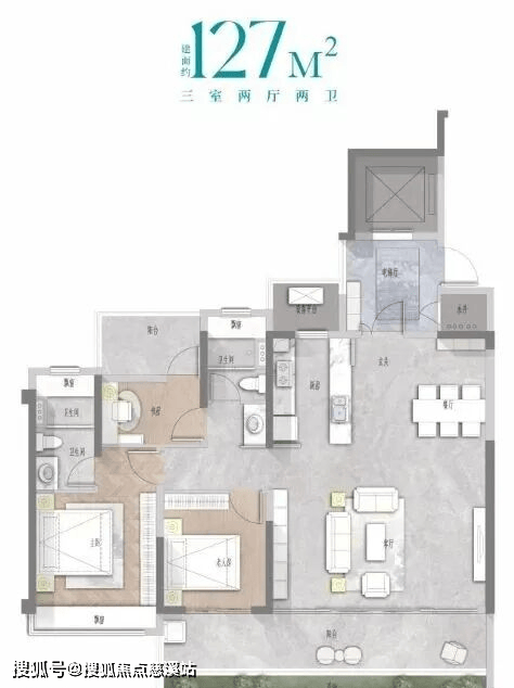 建面约127㎡舒适三房:空间布局合理,兼顾度假与生活