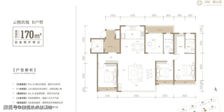 170㎡四室两厅两卫:有端厅和四面宽两种设计。分布在6/9号楼上。