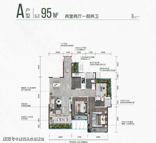 提供多种户型选择,面积范围在95-135平方米之间,包括2+1房、3+2房、3+3房等灵活布局,得房率较高,部分户型可达107%。