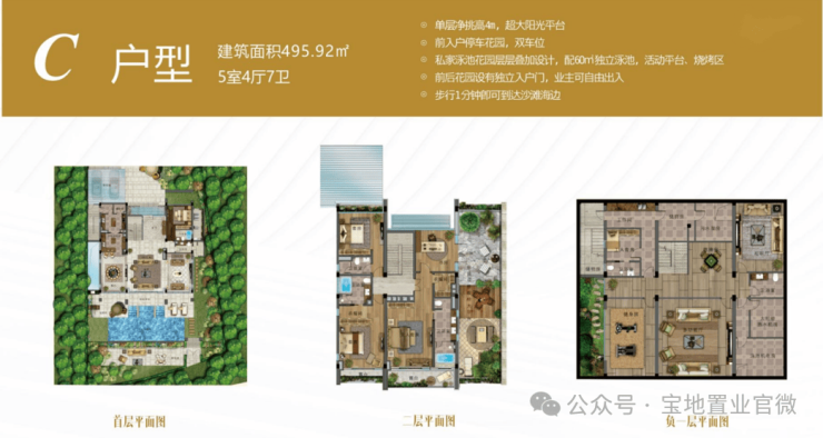 建筑面积约:422㎡ - 730㎡ 国岸上争藏别墅,只为少数派专属量身定制。