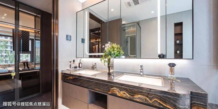 海信·璟悦以星级酒店规制打造双套房,主卧配备双台盆与观景浴缸,让日常也成为一场生活的仪式。
