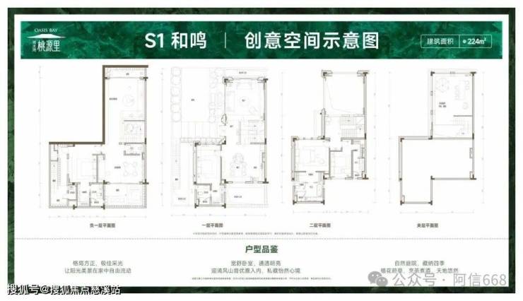 2、建筑面积约224㎡,可拓展约126㎡室内面积,首层庭院约60㎡,双拼负一层额外赠送约100㎡庭院