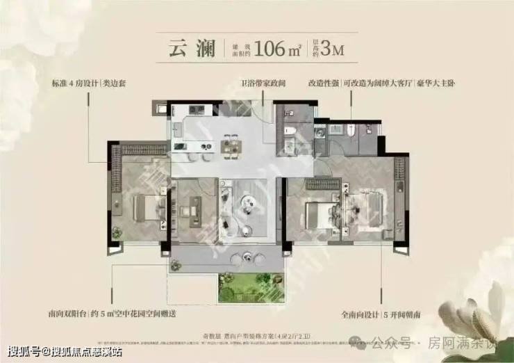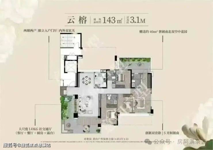 产品特征:户户有花园,家家有庭院。超高得房率综合使用面积超100%。