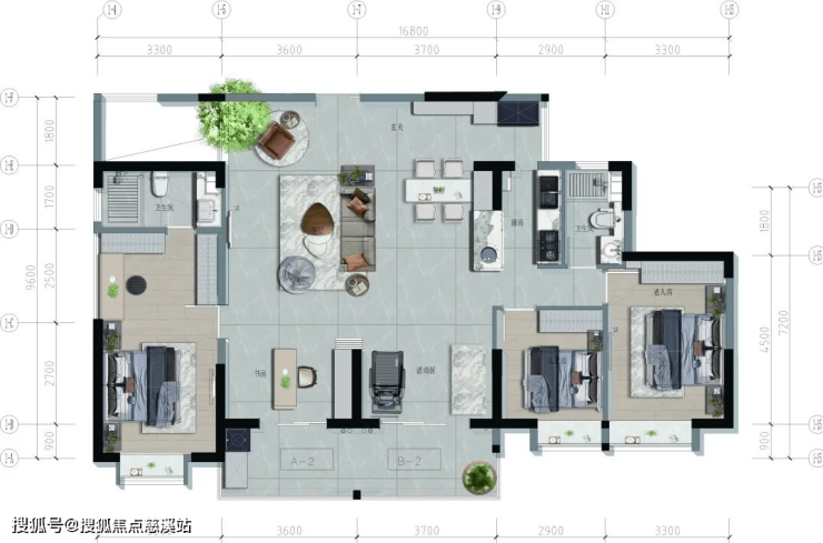 ◎无界生活:创新LDKS-B空间模式,客餐厨、书房、阳台联动打通