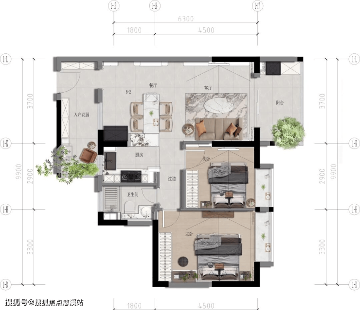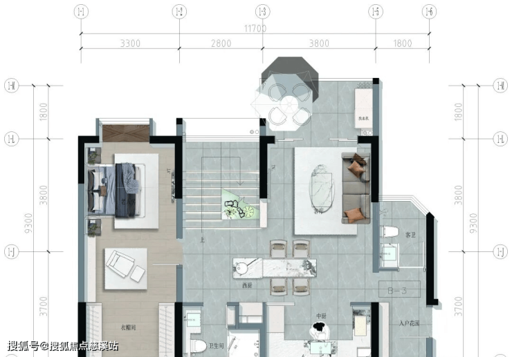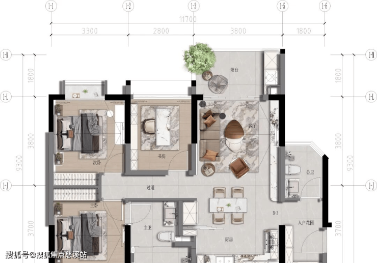 【B3 奢阔大平层 建面约89㎡ 三室两厅两卫】