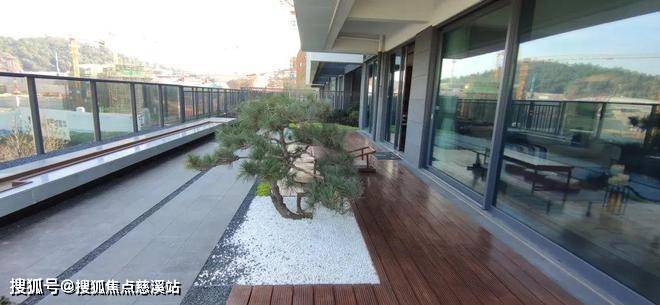 下叠一楼的双花园都是超大观景台,摆上假山池鱼,美轮美奂。
