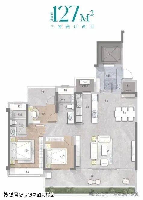 建面约127㎡舒适三房:空间布局合理,兼顾度假与生活