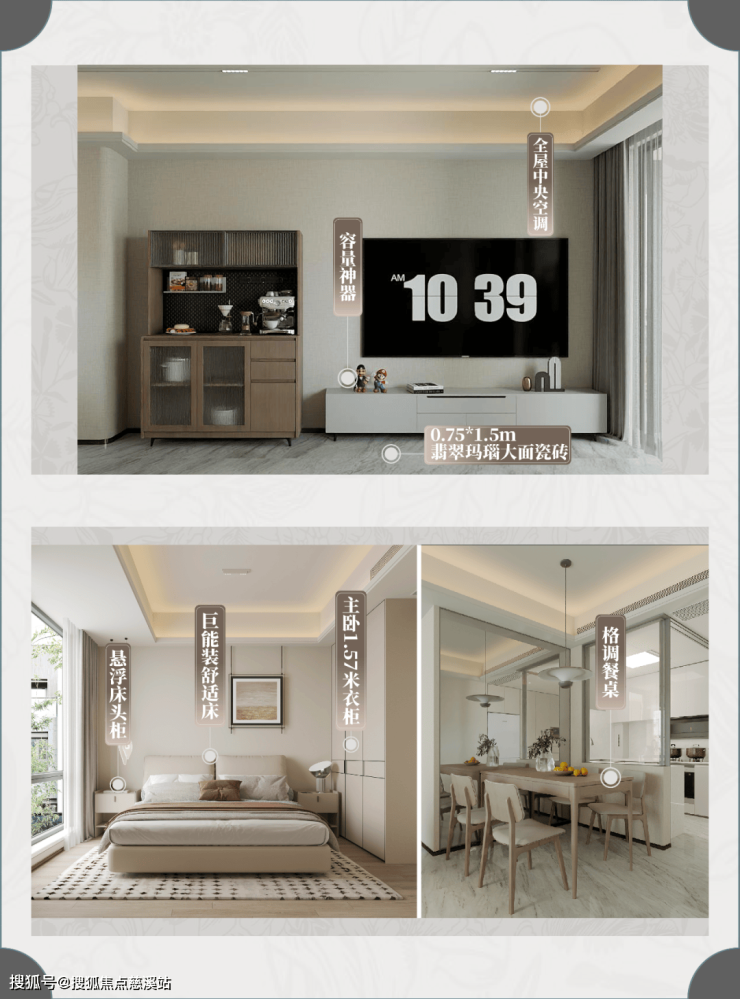 精准聚焦购房者的个性需求及审美风向,带来中古风、现代简约、意式轻奢三大居家美学风格,