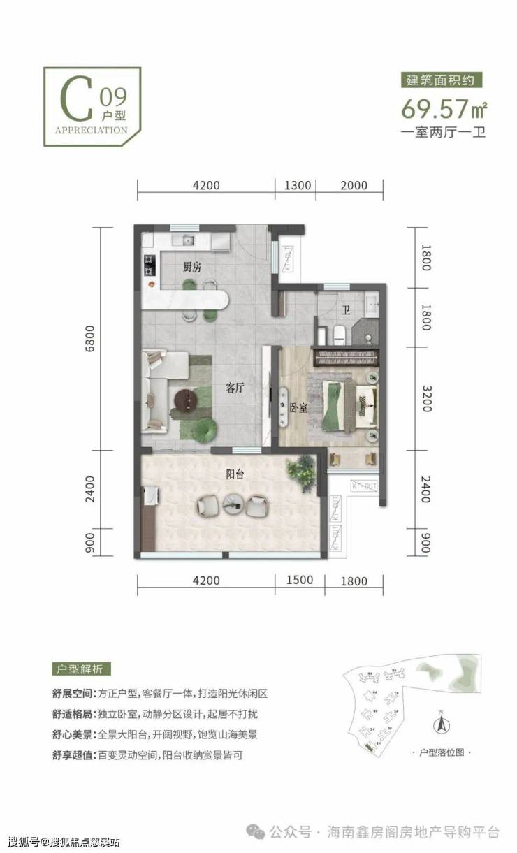 建筑面积约69㎡一房一厅
