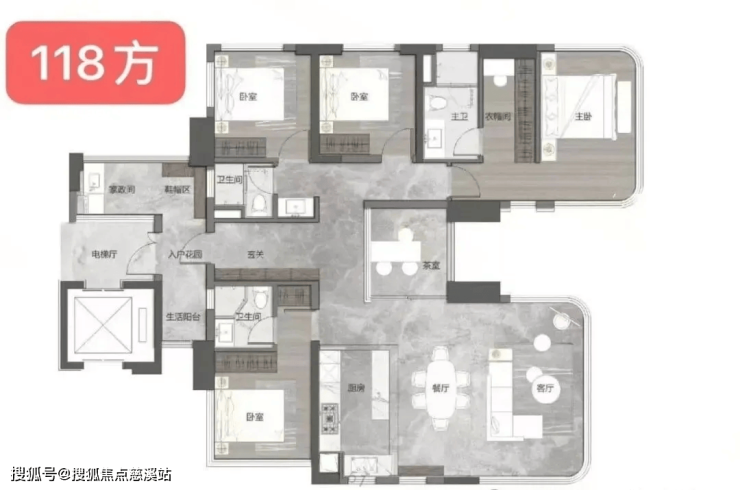【澜序丨建面约141㎡全景舱户型 五空间两厅四卫】