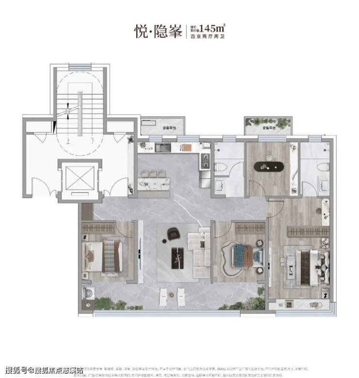 全系户型:10层125-175㎡宽境洋房、17-18层115-145㎡舒居小高层