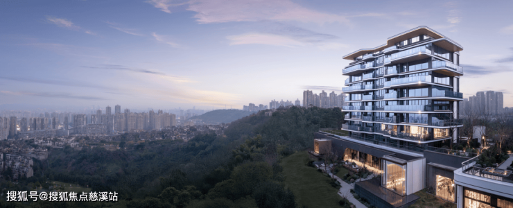 金茂在立面设计上花了很多心思。用弧线革命,颠覆传统的感官张力,以蝴蝶展翼为灵感,摒弃了直白的仿生符号,将自然韵律转化为当代东方的美学密码。立面精选仿铜色铝板,经过7道阳极氧化工艺处理,在保留金属质感的同时,呈现出玉石般的温润光泽。这种“暖色系科技材料”的运用,既规避了玻璃幕墙的冰冷感,又解决了传统石材的维护难题。更巧妙的是,设计师在阳台外侧植入磨砂玻璃屏风,既保证私密性,又让立面在昼夜交替间演绎光线的变奏曲。金茂璞印金开汲取隈研吾“负建筑”理念,借鉴其瑞士悬浮式住宅作品“悬浮森林”,运用山体基地层、园林会所功能抬高层、住宅悬浮层三重底盘架构,为重庆创造一座“悬浮森林”。
