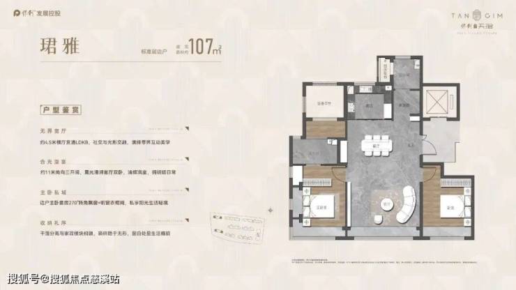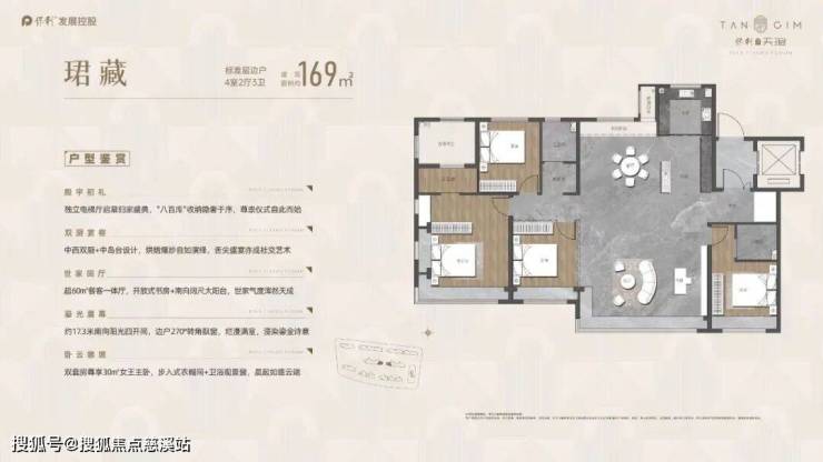 户型设计:涵盖107-169㎡多种户型,采用“零走道”布局、飘窗扩容、双套房设计等,得房率高达96%-97%,空间利用率领先市场。
