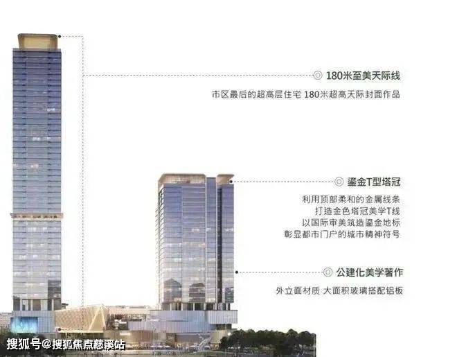 对标全球豪宅地标理念,打造现代艺术感超流体立面,超高颜值奢宅铝板玻璃幕墙体系 |銮金T型塔冠 | 双层中空Low-e玻璃,隔热隔音。
