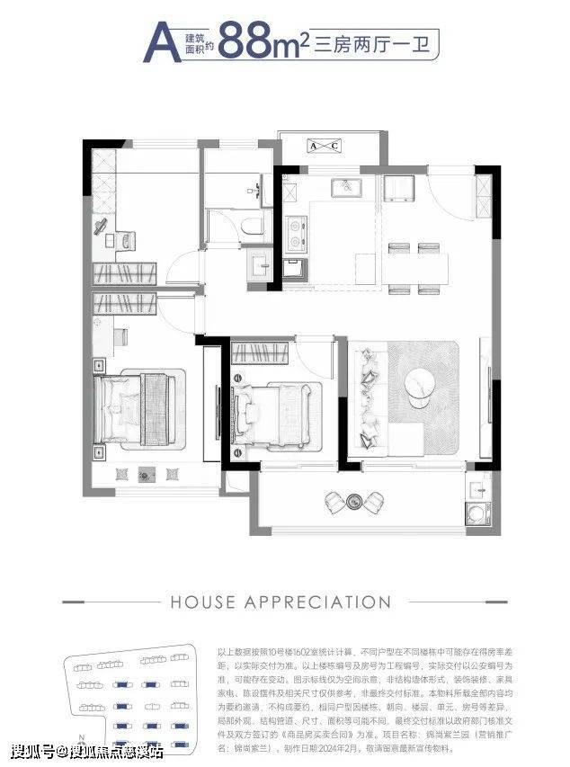 亮点2 外立面大面玻璃,南向窗墙比约0.47,具有较高窗墙比;外墙采用三玻两腔玻璃,隔热保温的同时,隔离室外噪音。
