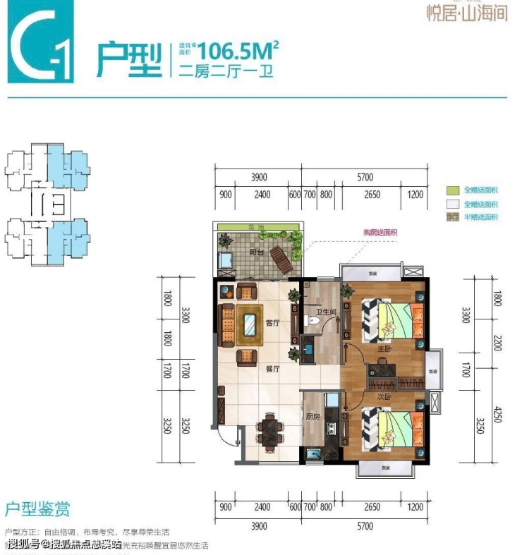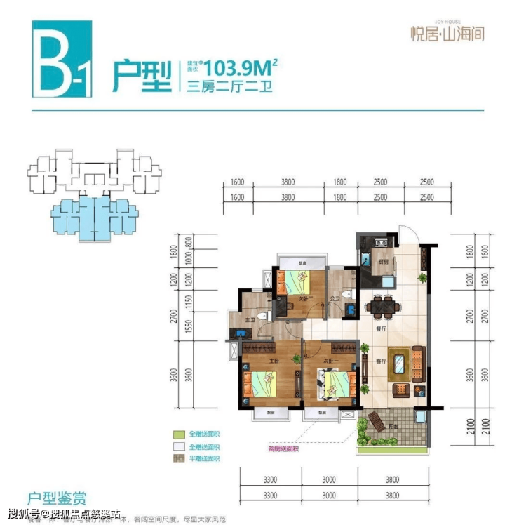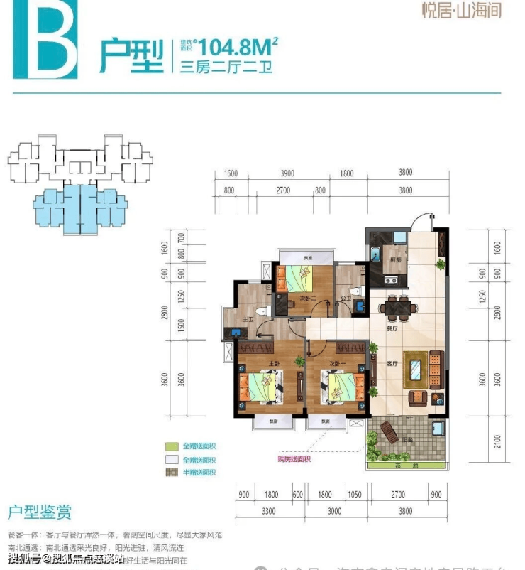 户型面积:101~106三房两厅两卫/两房两厅两卫