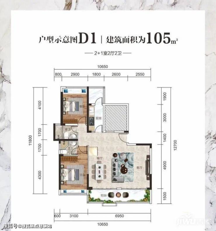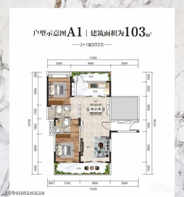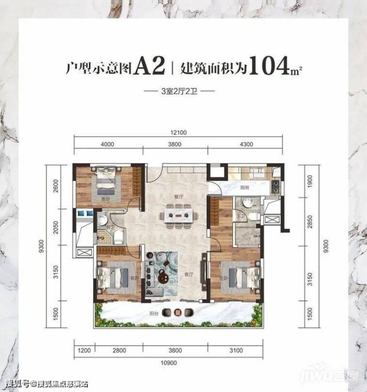 【户型面积】建面为102.89平米、103.62平米两房户型