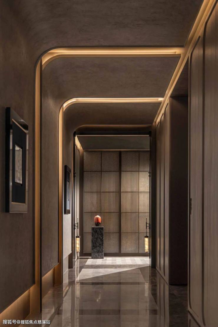 负一层会所艺术过廊采用鎏金艺术涂料,宛如夜空中闪烁的星辰,流露出一种低调的奢华。其中可见非遗瓷板画穿插在各个空间里,以画入瓷,远看是画,近看是瓷,成为惊鸿一瞥。