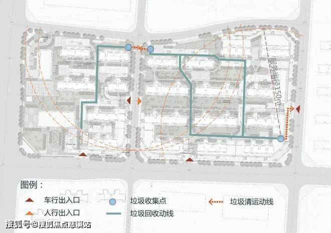 值得一提的是,在项目整体规划方案的设计中,贯彻集团3.0产品线中三大规划流线的设计思路,以客户的使用需求为导向,在设计时将垃圾转运、外卖及搬家、非机动车行驶作为项目交通流线设计的重点,结合整体路网布局,设计三大流线的路径及节点,将传统的社区『灰空间』作为规划设计中重点功能构成,形成组织有序的生活动线。