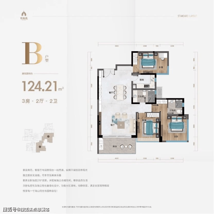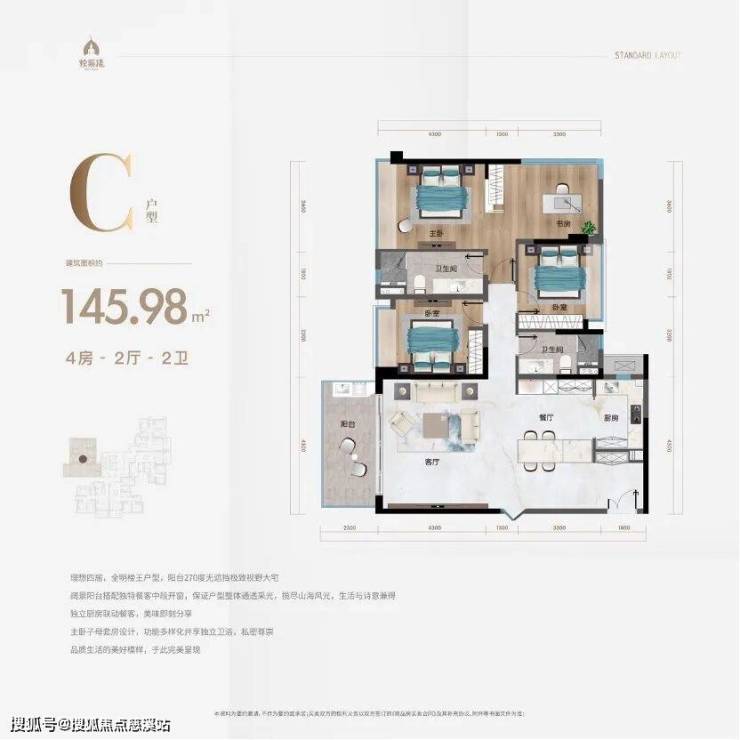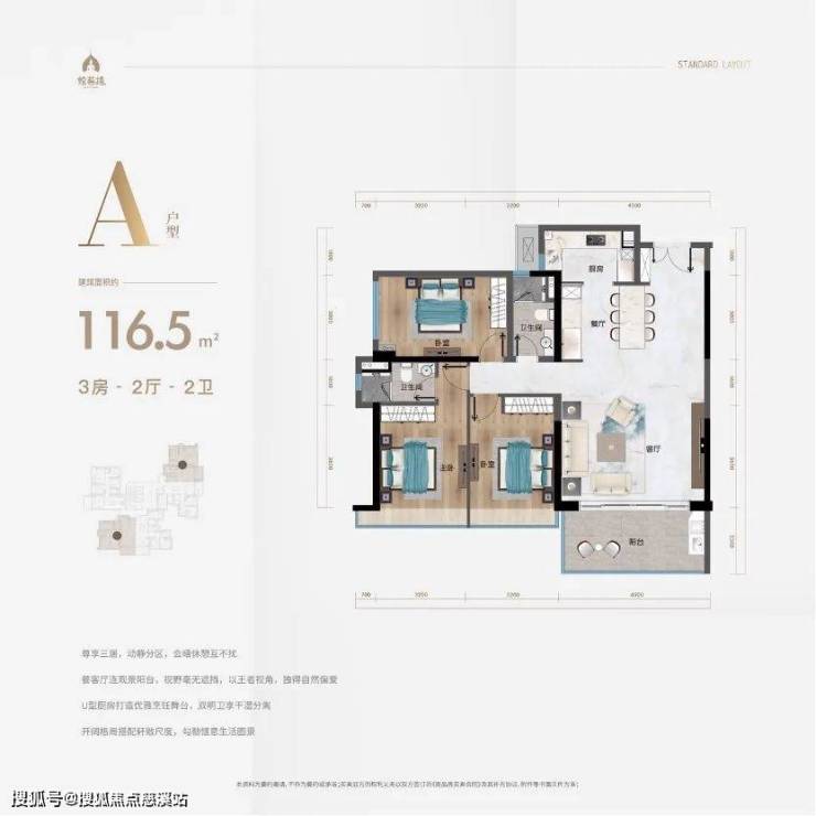 -116-146㎡三至四房:4.5米阔绰客厅,餐客独立分明,空间实用主义与仪式感并存。