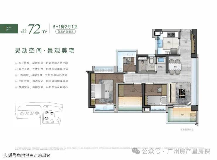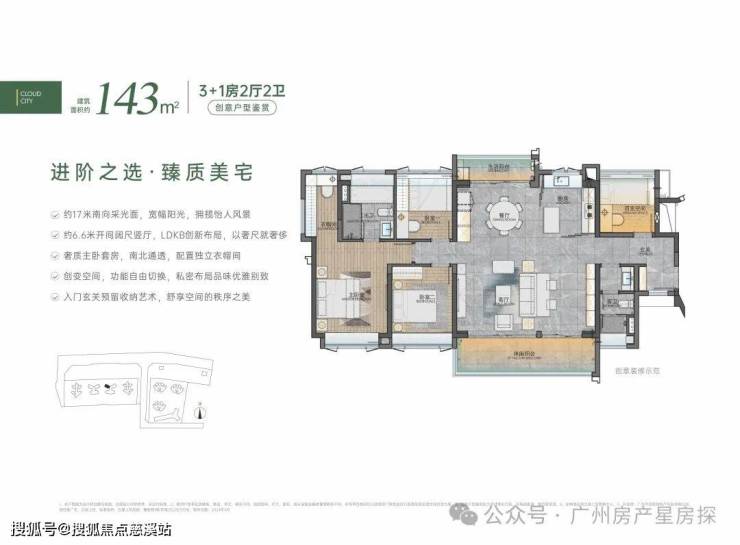 ✅户型面积:建面约72-105㎡3+1房、110-143㎡阔境臻品