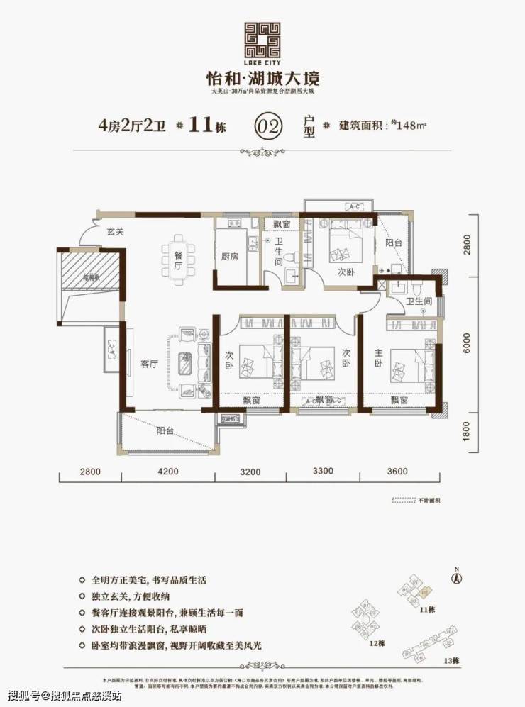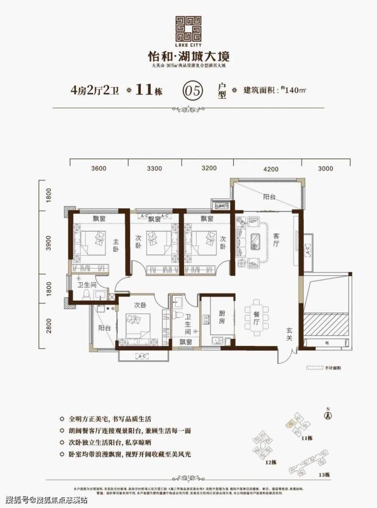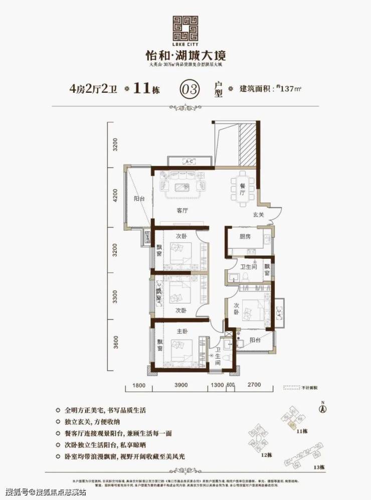 此次加推的11#楼王户型超具性价比,建筑面积约137—152㎡臻品美宅,户型方正、视野开阔、布局更合理、居住更舒适,均为灵动四房可拓展空间,得房率高。户户卧室均有浪漫飘窗,并且次卧还配置一个生活阳台,可创意设计增加功能用途,让您的生活兼顾每一面。