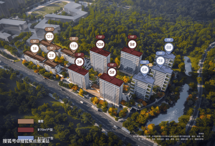 中间是四栋8-11层的洋房,户型建面170平米;