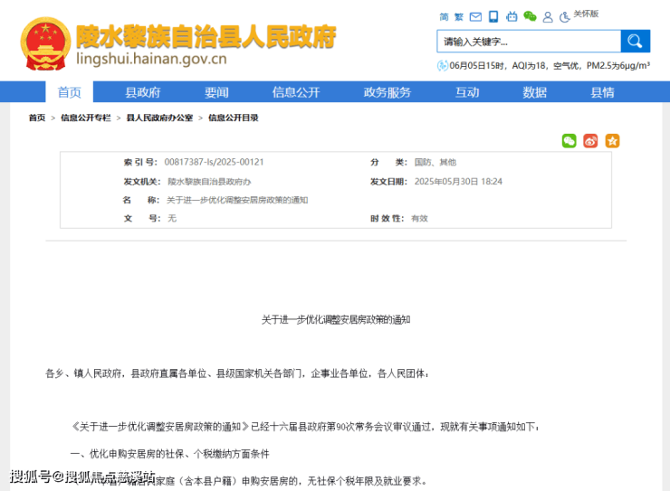 近期,陵水黎族自治县人民政府发布《关于进一步优化调整安居房政策的通知》。