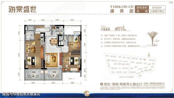 海棠盛世总占地约695亩,在售产品有建面约101-145㎡康养居。项目傲居海棠湾旁,尽享海棠湾全度假资源:三亚国际免税城、约32家滨海酒店(已开业18家)、解放军301医院、全球第三座亚特兰蒂斯水上乐园、梦幻不夜城、5A景区蜈支洲岛等丰盛度假资源,出则繁华,入则宁静,是国家海岸海棠湾旁值得拥享的70年产权度假大城。
