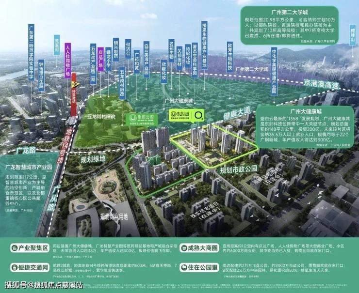 项目位于地铁14号线钟落潭站旁,一期距离大概900米,二期大约500米