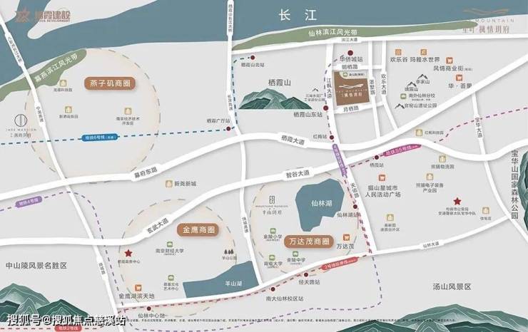 星叶枫情玥府位于南京城东栖霞山板块,毗邻长江,天然的地理优势,妥妥的依山傍水之景。自然、文旅、交通、教育、商业等资源在这里聚集。