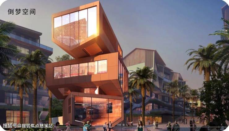 小镇通过积木岛、梦想城堡、云端、红色之恋、蓝色之恋、三位树屋、水下隐室、倒梦空间八大奇异建筑,汇聚顶尖品牌,打造科技馆、儿童乐园、婚恋主题馆、心灵修养馆等多元业态于一体的商业美学空间,是集网红打卡与商业场景并存的心地标。
