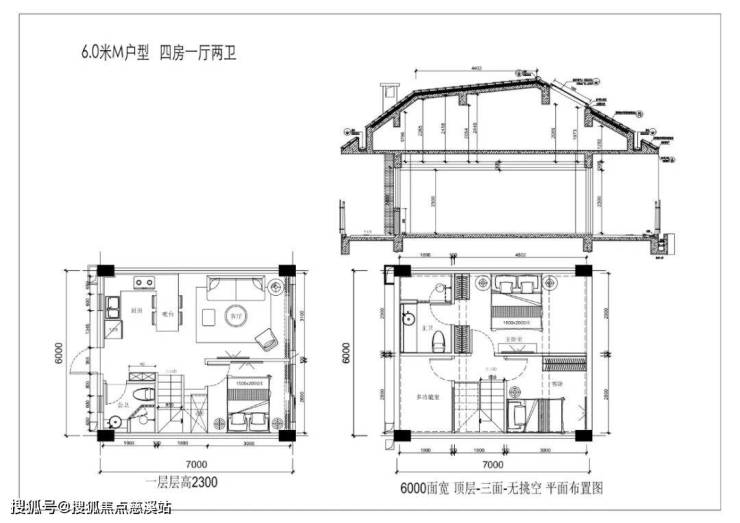 建面65和75,四层双折坡,实得81㎡—99㎡,2-3房2卫