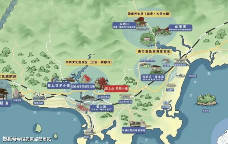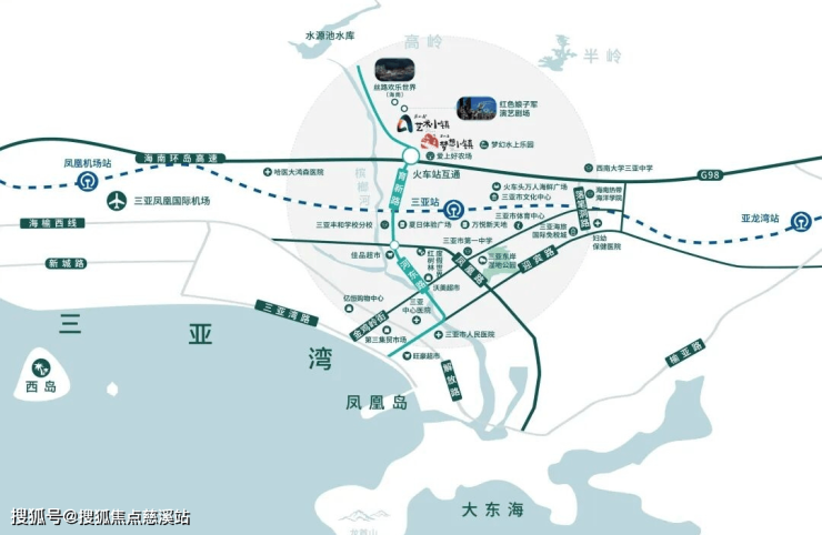 景区配套:红色娘子军演艺公园、三亚梦幻水上乐园、约25万方丝路欢乐世界