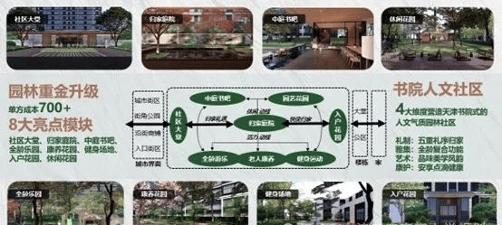 超700单方的园林:首个书院人文社区风格,八大园区亮点,中心景观配备空调玻璃房书吧,为业主提供了一年四季的公共看书娱乐空间。