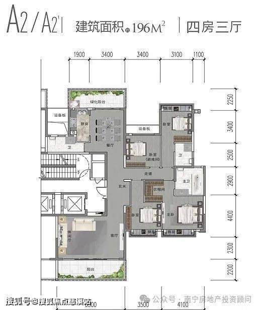 层高:166㎡-3米195、220㎡-3.1米。