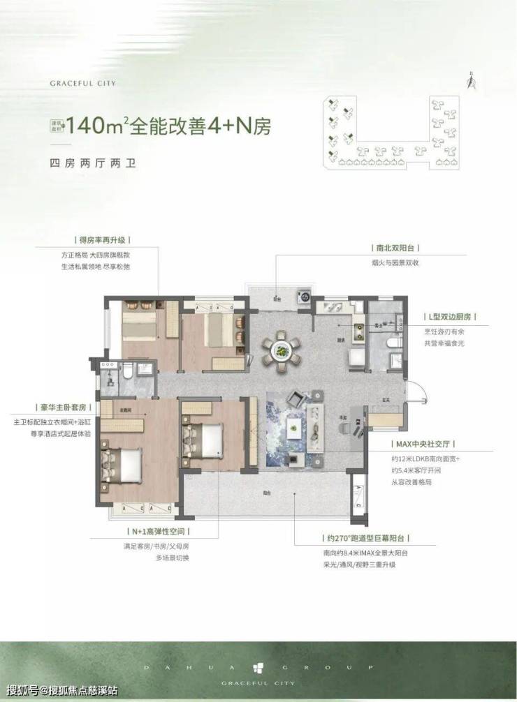 4. E户型:建筑面积140㎡,拥有大面宽与阔绰空间,是高端改善群体的首选。