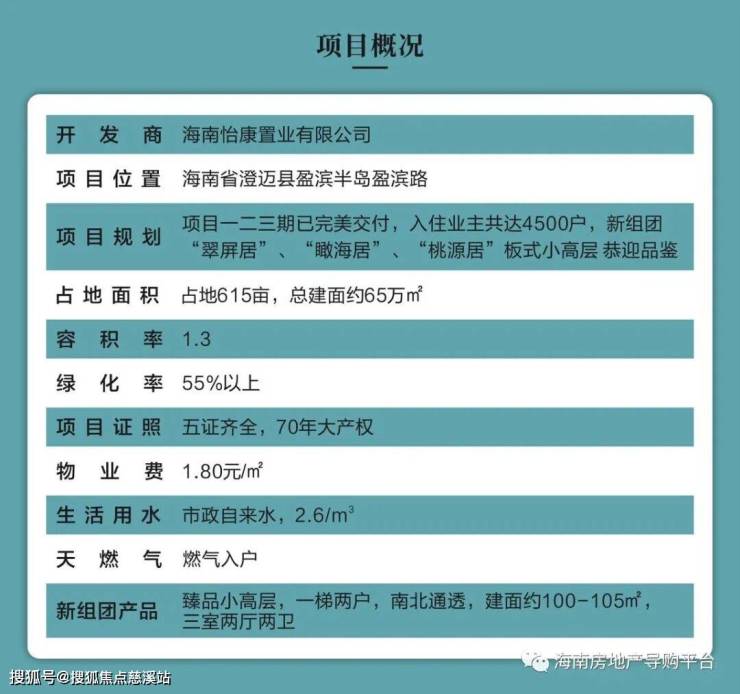 新组团占地190余亩,总建面约19万㎡。一组团“翠屏居”为14栋小高层;二组团“桃源居”由6栋洋房和4栋小高层组成;三组团“瞰海居”为6栋海景小高层。均采用纯正滨海建筑风格。