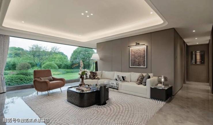 单元入户门则打造了约3.6米挑空空间,采用了酒店式悬浮吊顶的设计。内墙壁还使用豪宅项目应用在客厅的“900*1800的简一品牌瓷砖”,妥妥的大手笔。