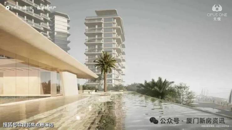 项目采用北高南低布局,7栋楼三面围合中庭花园,中央庭院直面五缘湾敞开,海上栈道与碧波成为社区景观的自然延伸。建筑如七艘巨轮破浪前行,户户瞰景,栋栋临湾,实现“引海为庭,人在画中”的东方诗意栖居。