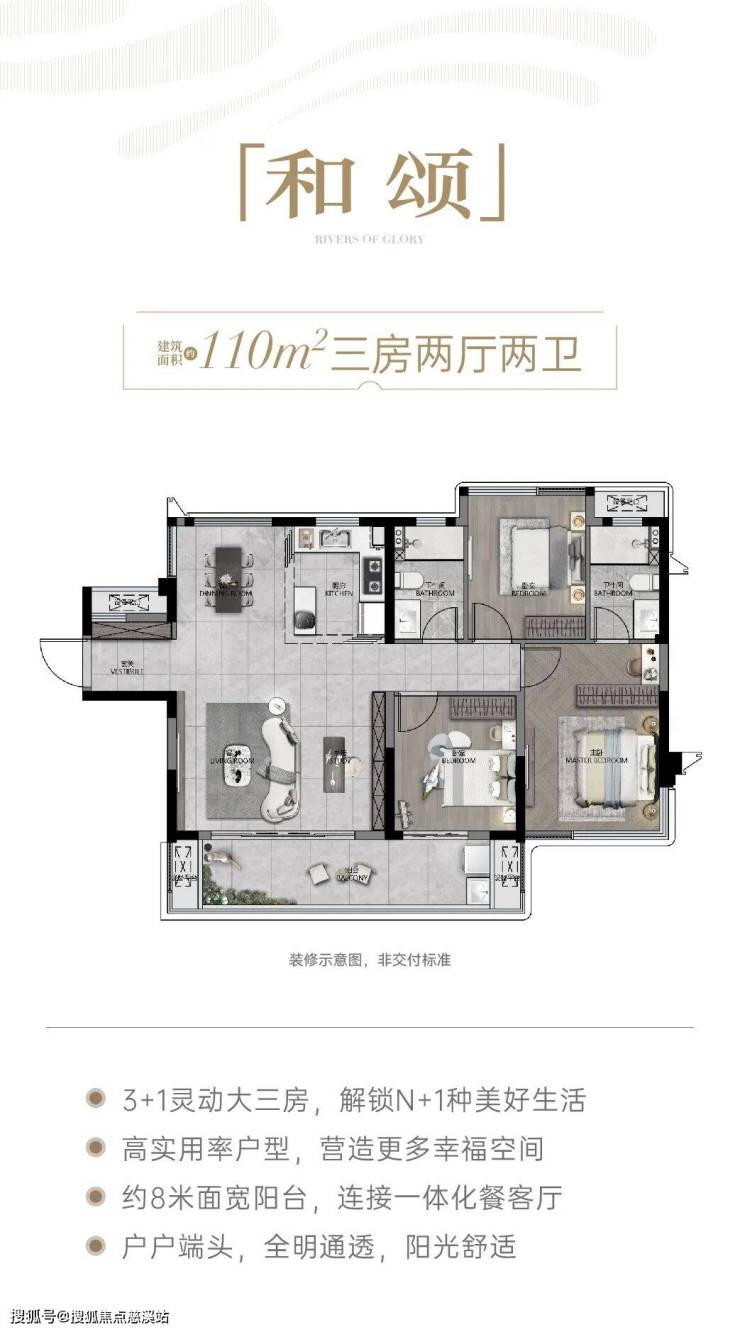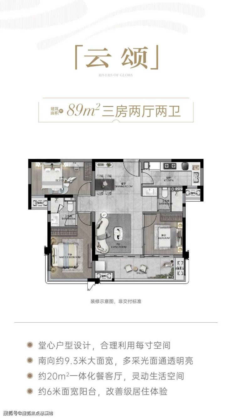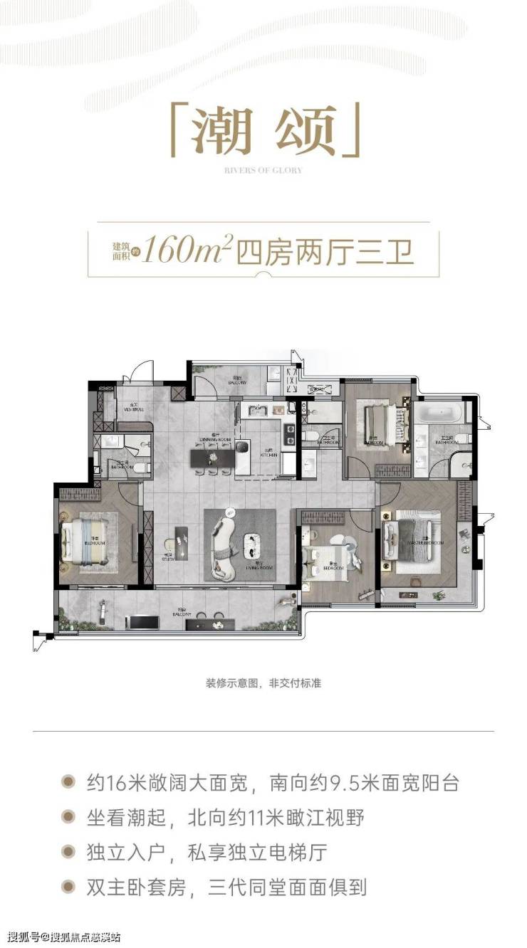 “榕发•云潮颂”规划了一系列容积率仅1.8、面积介于89至160平方米之间的江景大平层住宅。在住宅配置上采用了1梯1户的尊享设计,户型南北通透,空间实用率高。特别是160平方米的户型,拥有约11米的壮阔江景视野,并配备了南向约9.5米的宽敞阳台,为居住者提供了更具舒适性和私密性的生活体验。