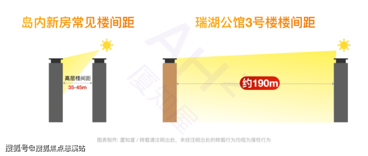 其次,是它190m级别的宽阔楼距。我们盘点了下,超80m的楼间距,在岛内其他在售新房中,通常要180㎡+的楼栋才可能拥有。