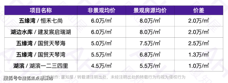 更何况在厦门岛内,“景观”的溢价从来就不低。从五缘湾到湖边水库,乃至于西部很火的湖滨安商房,有景观和没有景观,差价都能达到1万+/㎡。