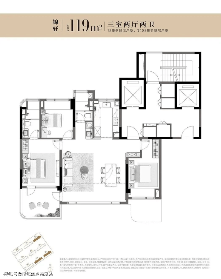 以建面约119㎡起步的友好户型,叠加约94-97%的高使用率,在有限的面积承载无限的生活想象!