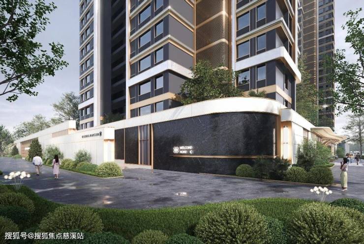 建筑外立面采用石材+铝板+玻璃幕墙,质感高级!